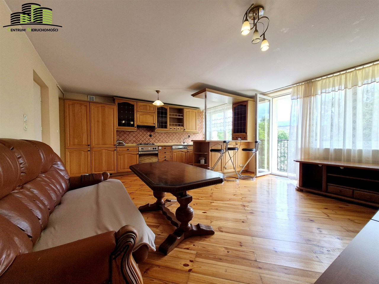- duży słoneczny salon z kuchnią z wyjściem na balkon