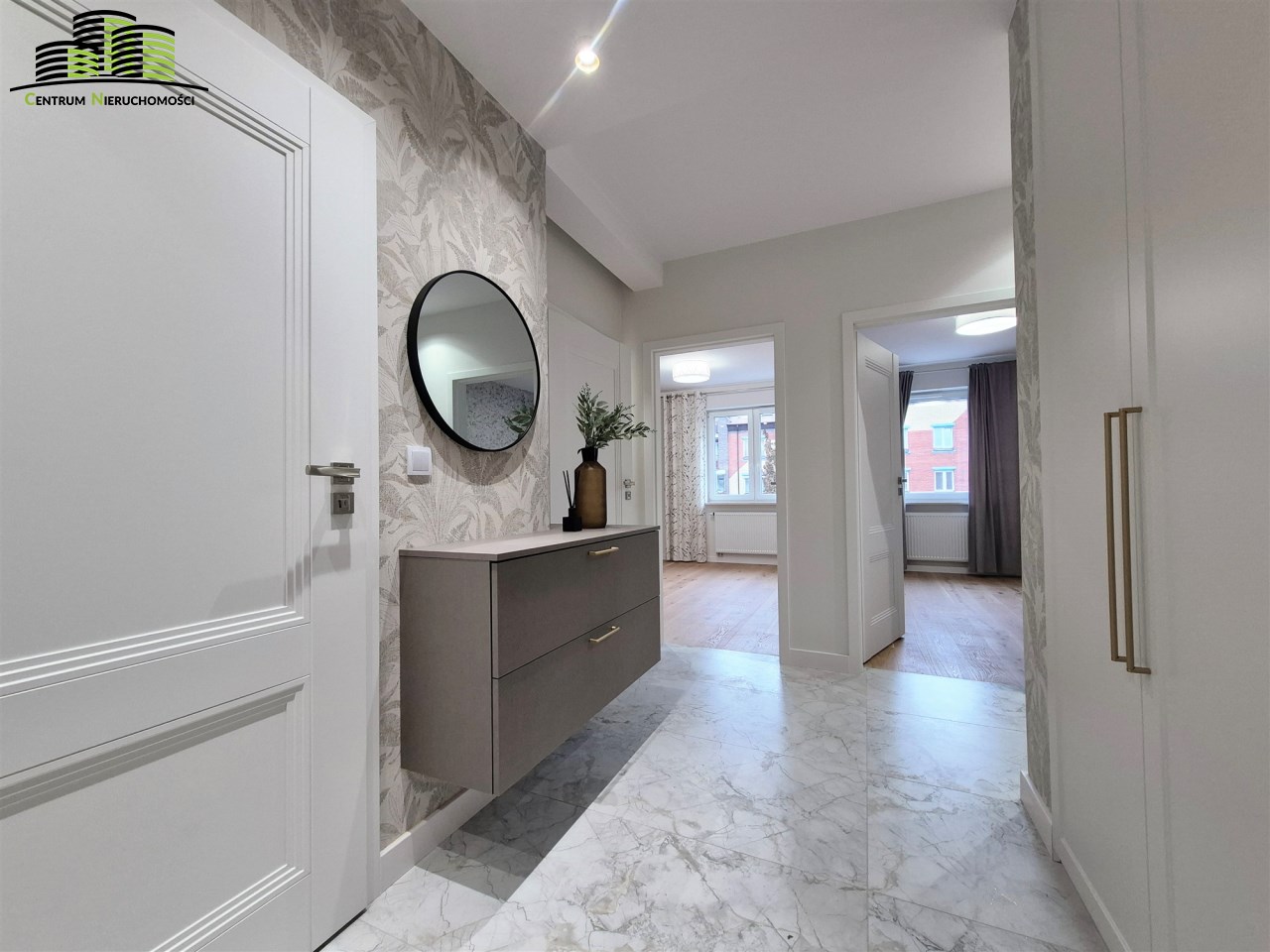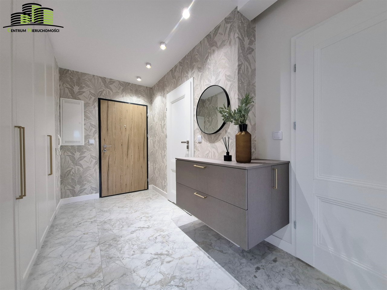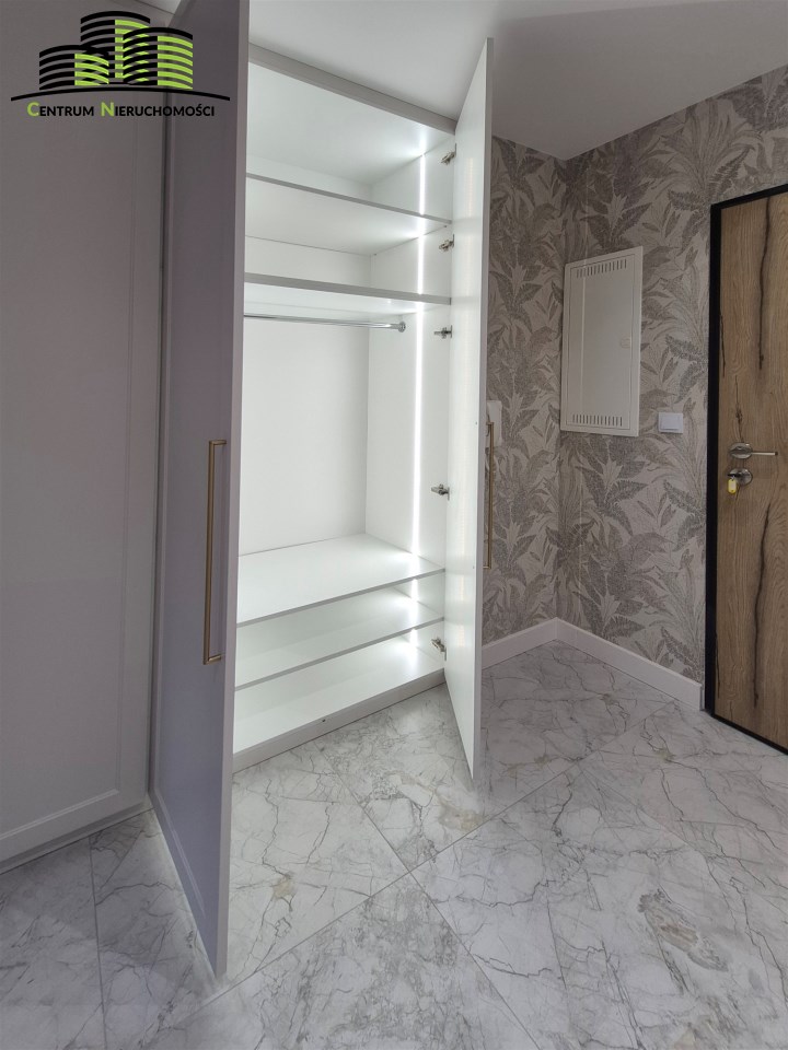 Przedpokój – wyposażony w zabudowę szaf wnękowych z automatycznym systemem Led oraz elegancką komodą