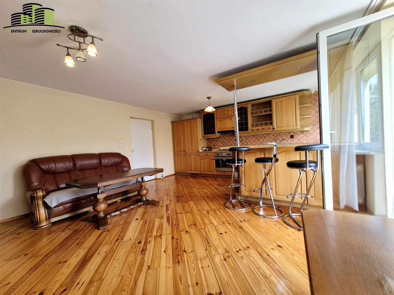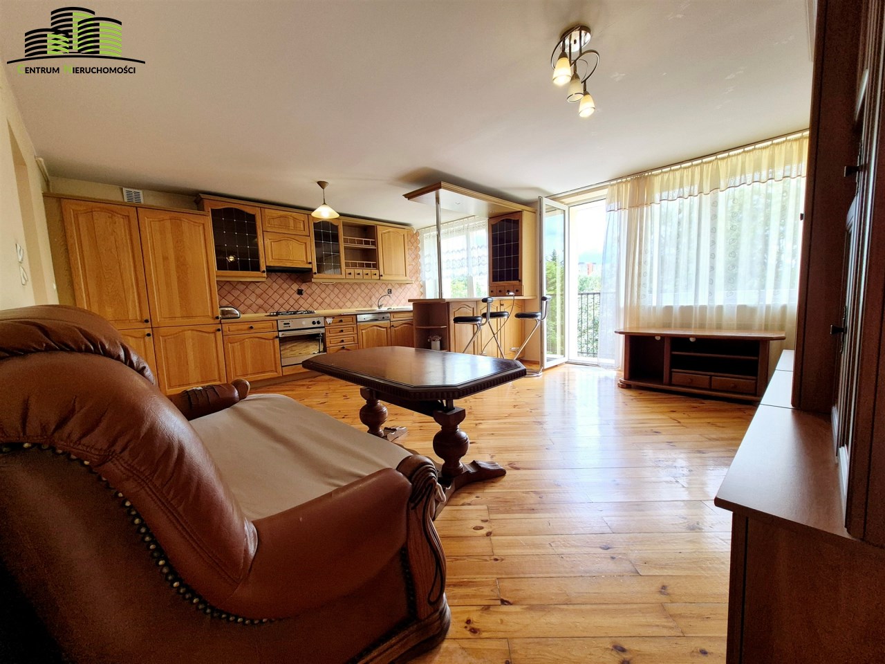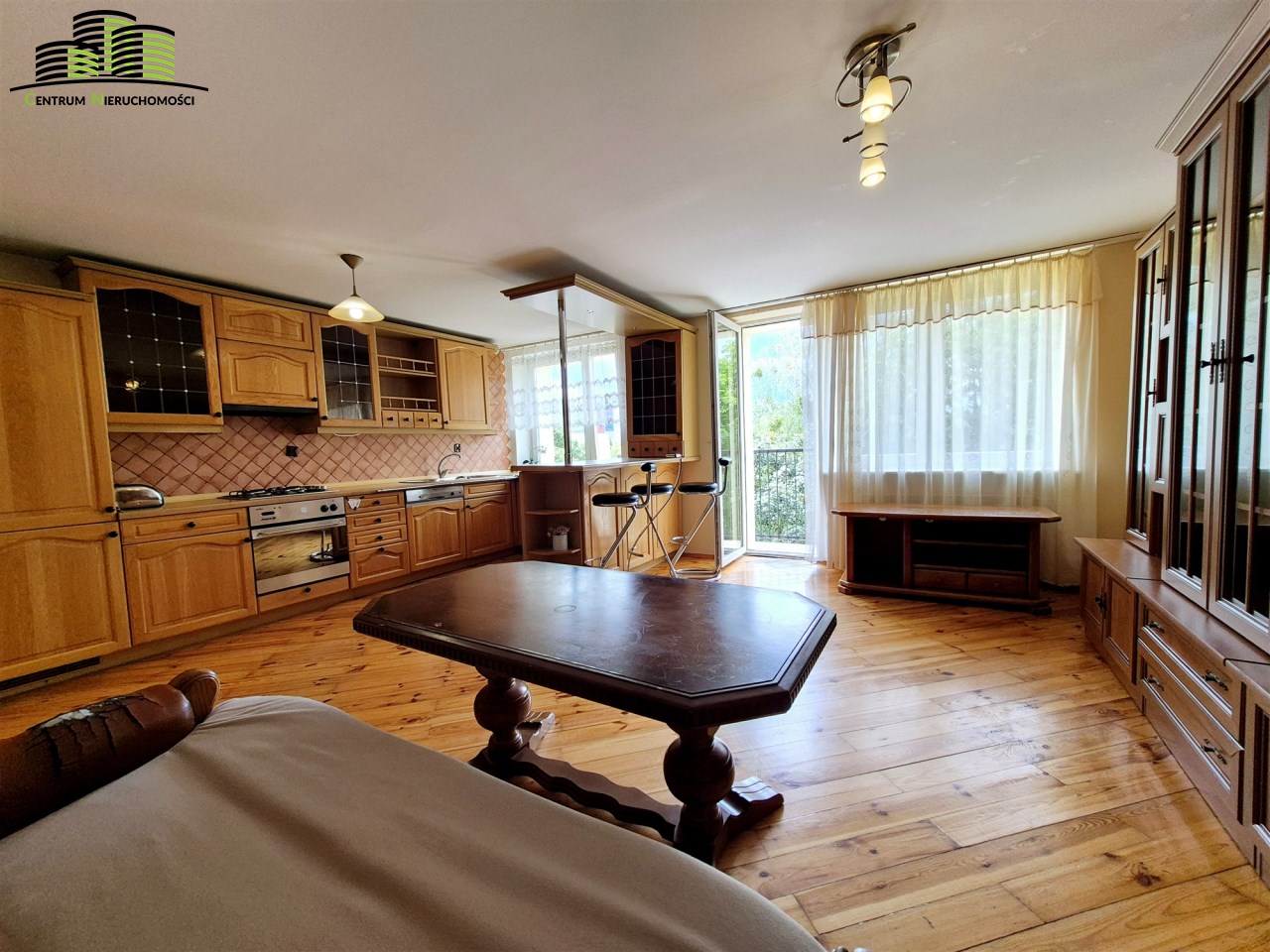 - duży słoneczny salon z kuchnią z wyjściem na balkon