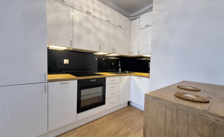 3. Wnętrze zostało zaprojektowane i wykończone z dbałością o każdy detal. Nowoczesna zabudowa kuchenna, wysokiej jakości materiały oraz nowa armatura sprawiają, że mieszkanie nie wymaga żadnych nakładów finansowych.