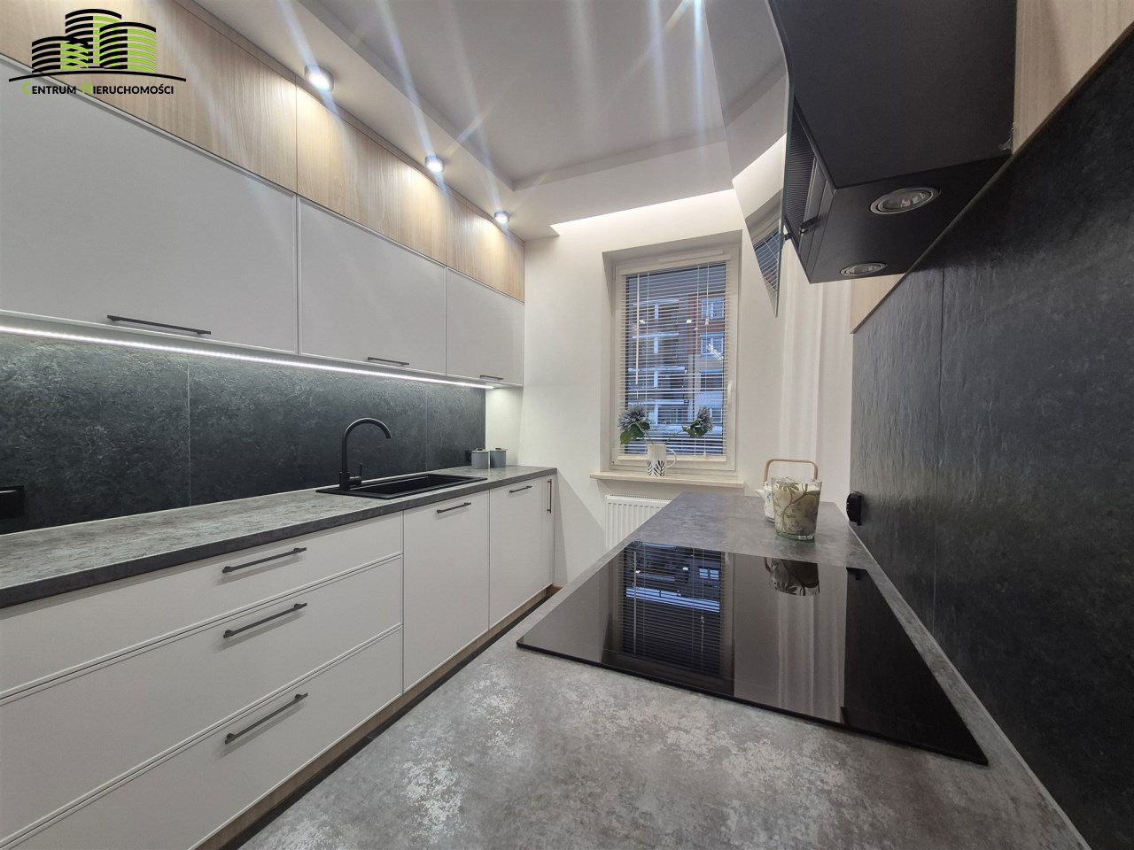 Przestronny salon z aneksem kuchennym, świetnie doświetlony i ustawny